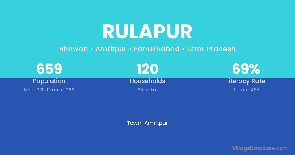 Rulapur village has a total population of 659 people, of which 371 are males and 288 are females.