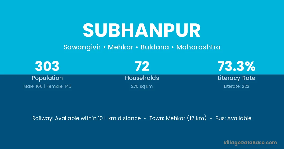 Subhanpur village has a total population of 197 people, of which 100 are males and 97 are females.