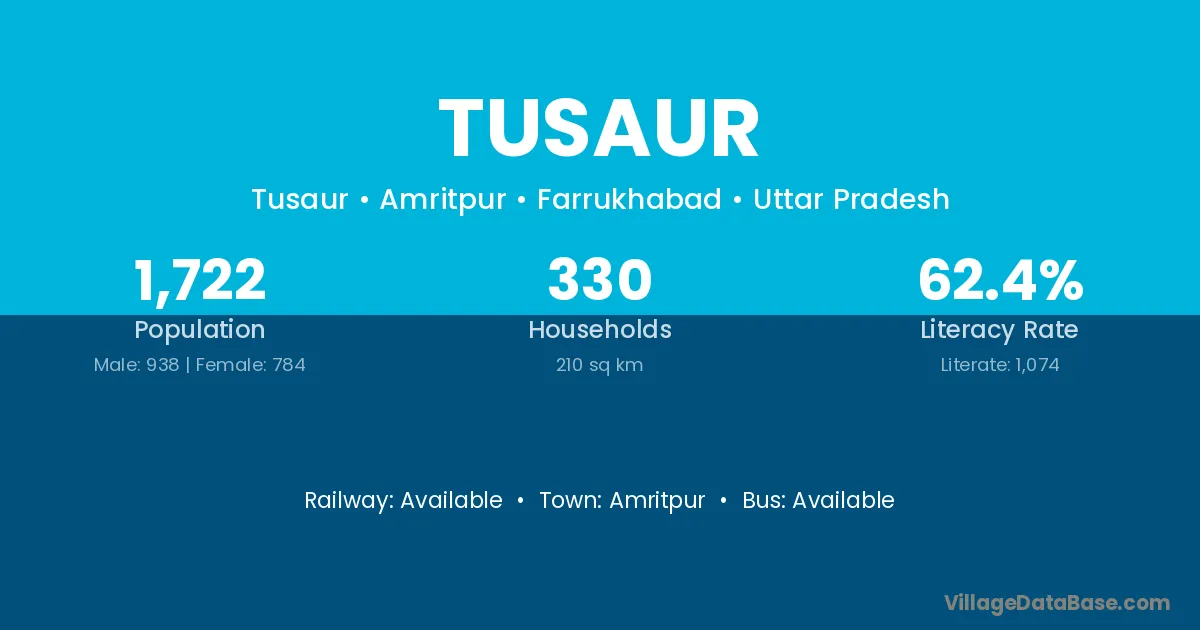 Tusaur village has a total population of 1,722 people, of which 938 are males and 784 are females.