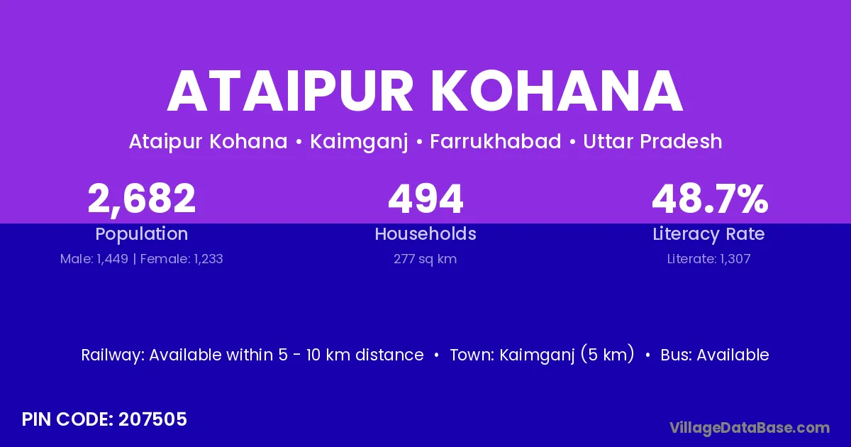 Kaimganj (5 km) is the nearest town to Ataipur Kohana village for major economic activities and is located approximately 5 km away.