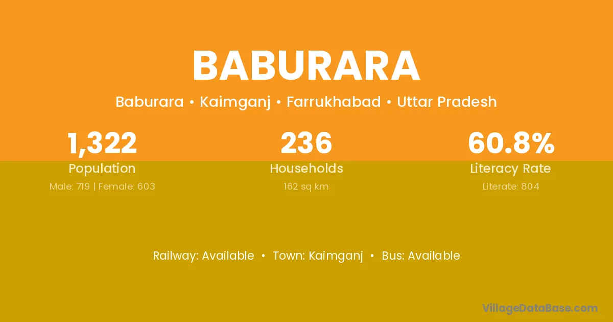 Baburara village has a total population of 1,322 people, of which 719 are males and 603 are females.