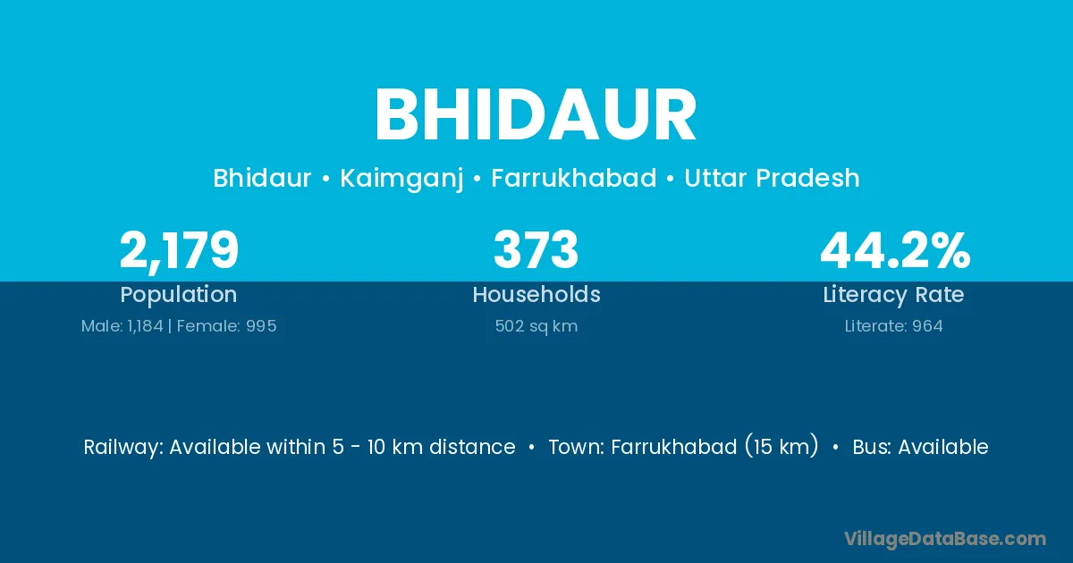 Farrukhabad (15 km) is the nearest town to Bhidaur village for major economic activities and is located approximately 15 km away.