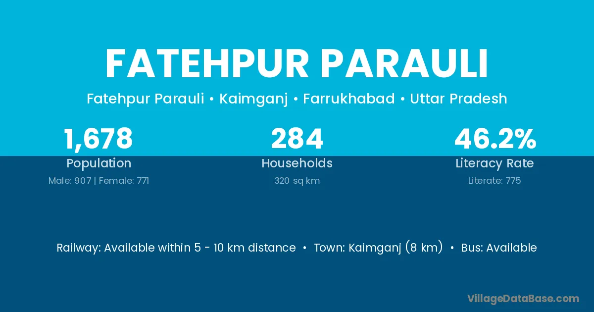 Kaimganj (8 km) is the nearest town to Fatehpur Parauli village for major economic activities and is located approximately 8 km away.