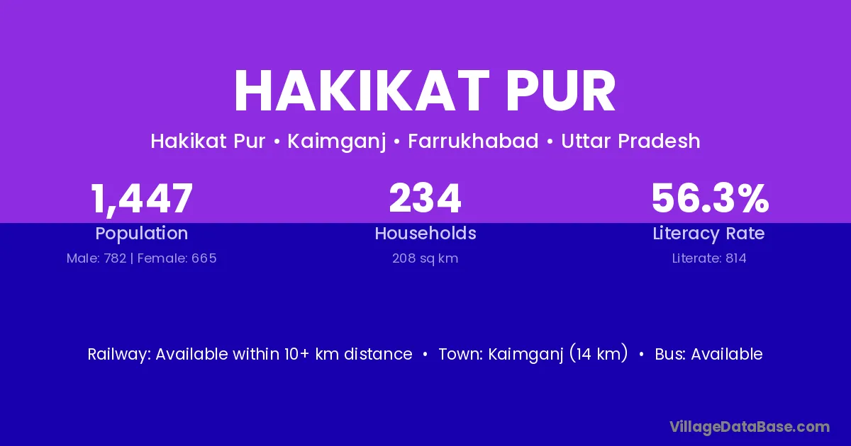 Kaimganj (14 km) is the nearest town to Hakikat Pur village for major economic activities and is located approximately 14 km away.