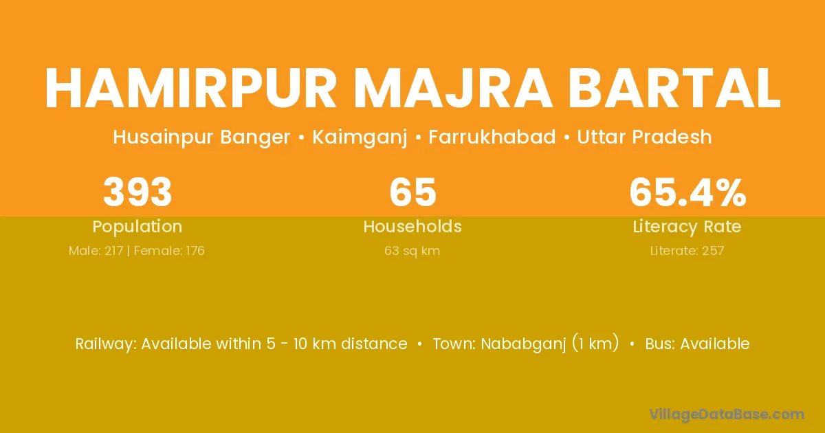 Nababganj (1 km) is the nearest town to Hamirpur Majra Bartal village for major economic activities and is located approximately 1 km away.