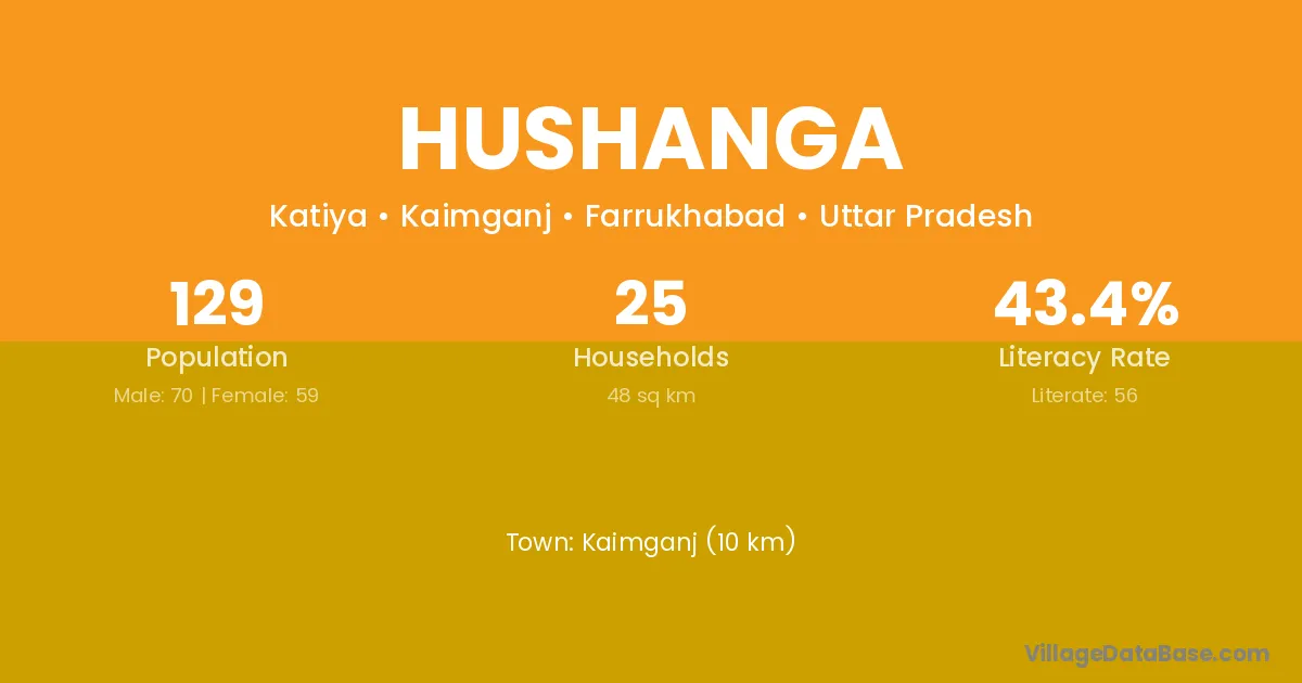 Hushanga village has a total population of 129 people, of which 70 are males and 59 are females.