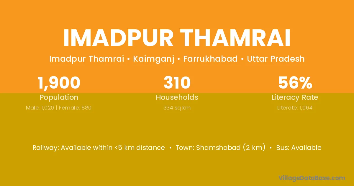 Imadpur Thamrai village has a total population of 1,900 people, of which 1,020 are males and 880 are females.