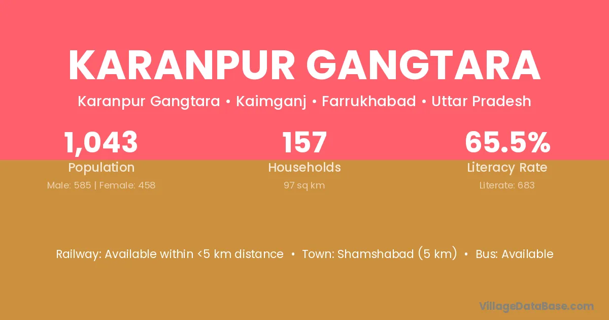 Shamshabad (5 km) is the nearest town to Karanpur Gangtara village for major economic activities and is located approximately 5 km away.