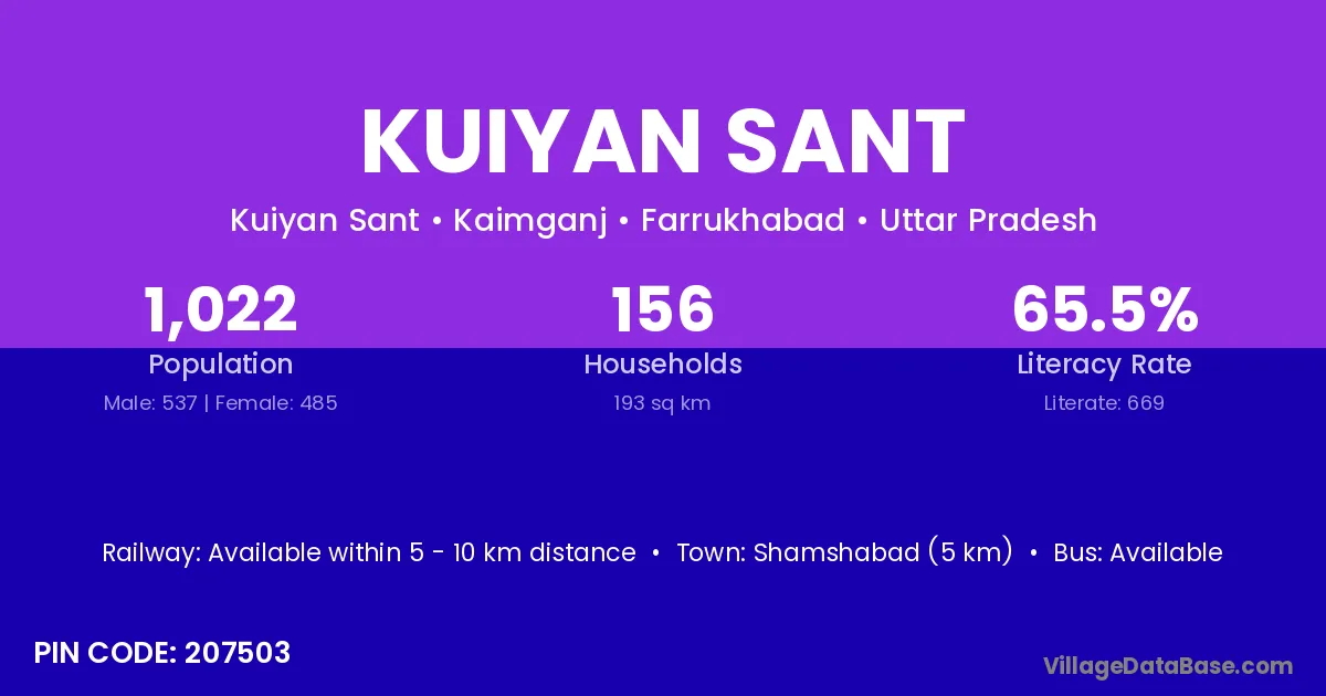 Shamshabad (5 km) is the nearest town to Kuiyan Sant village for major economic activities and is located approximately 5 km away.
