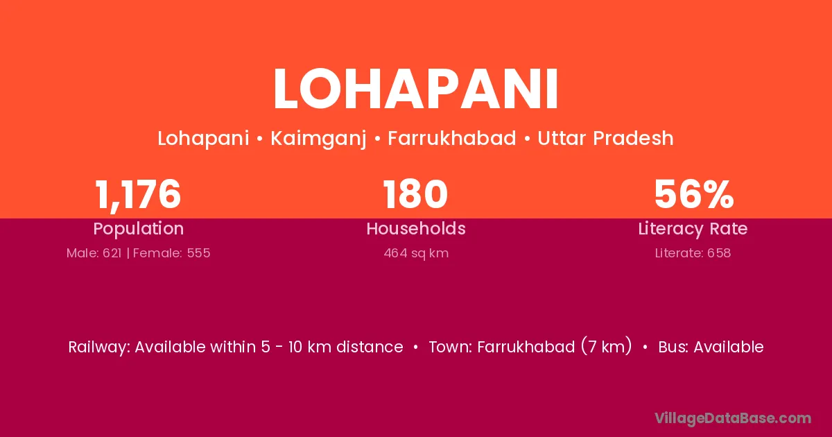 Farrukhabad (7 km) is the nearest town to Lohapani village for major economic activities and is located approximately 7 km away.