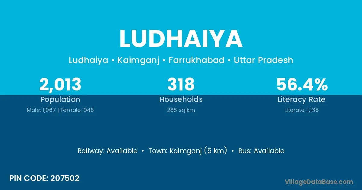 Kaimganj (5 km) is the nearest town to Ludhaiya village for major economic activities and is located approximately 5 km away.