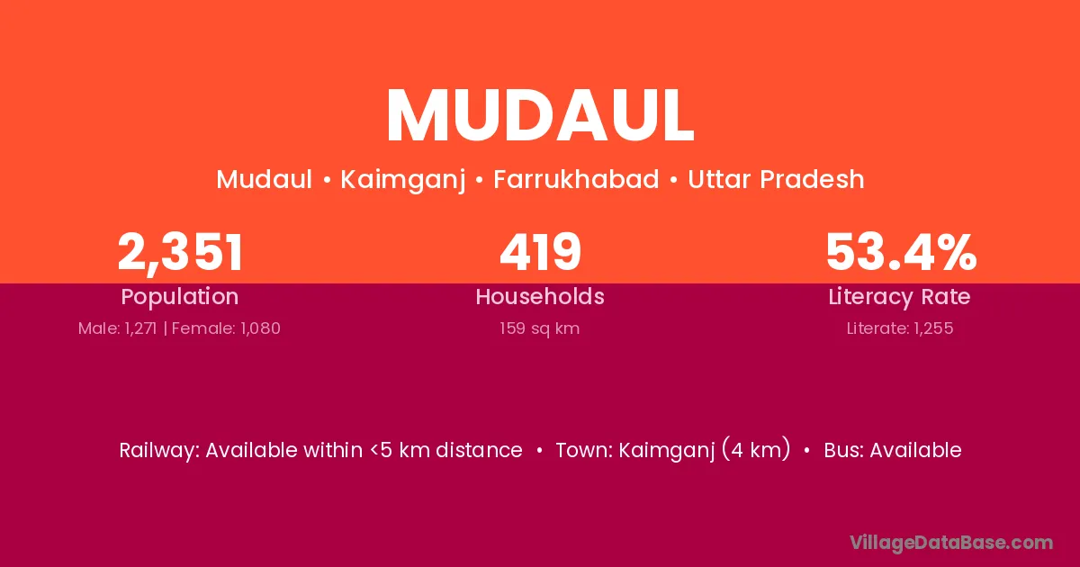 Kaimganj (4 km) is the nearest town to Mudaul village for major economic activities and is located approximately 4 km away.