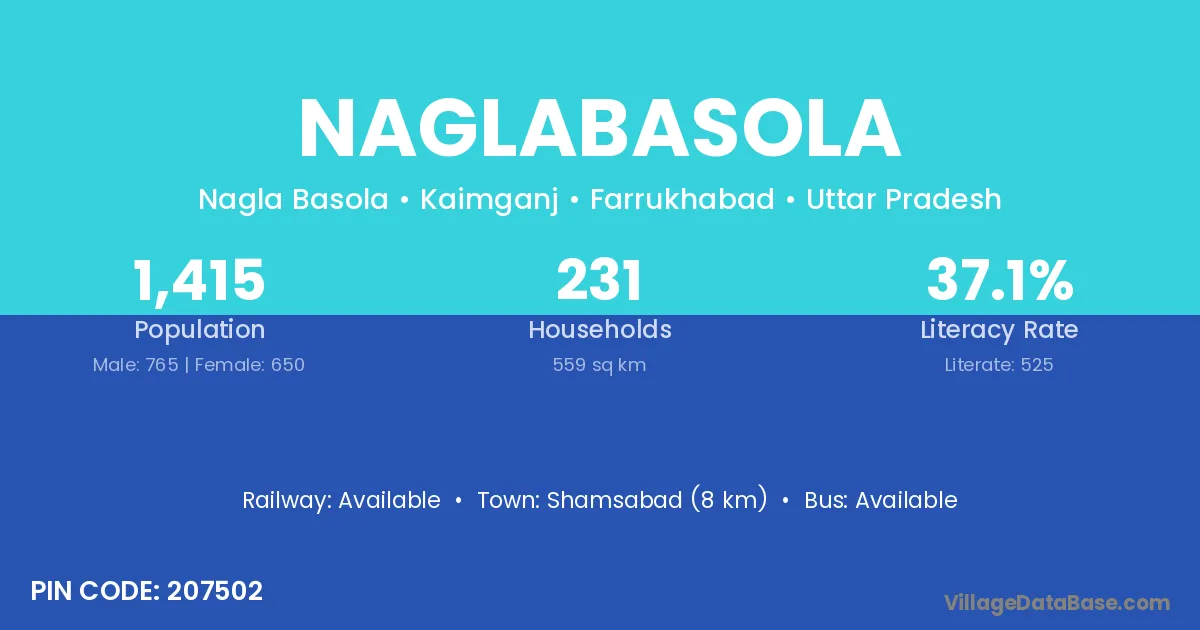 Shamsabad (8 km) is the nearest town to Naglabasola village for major economic activities and is located approximately 8 km away.