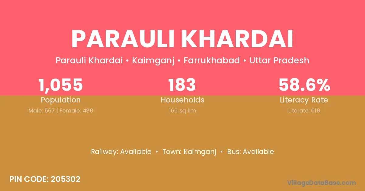 Parauli Khardai village has a total population of 1,055 people, of which 567 are males and 488 are females.