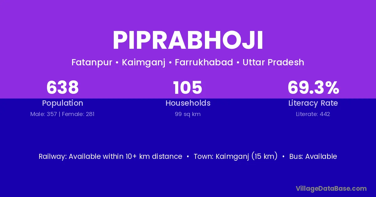 Kaimganj (15 km) is the nearest town to Piprabhoji village for major economic activities and is located approximately 15 km away.