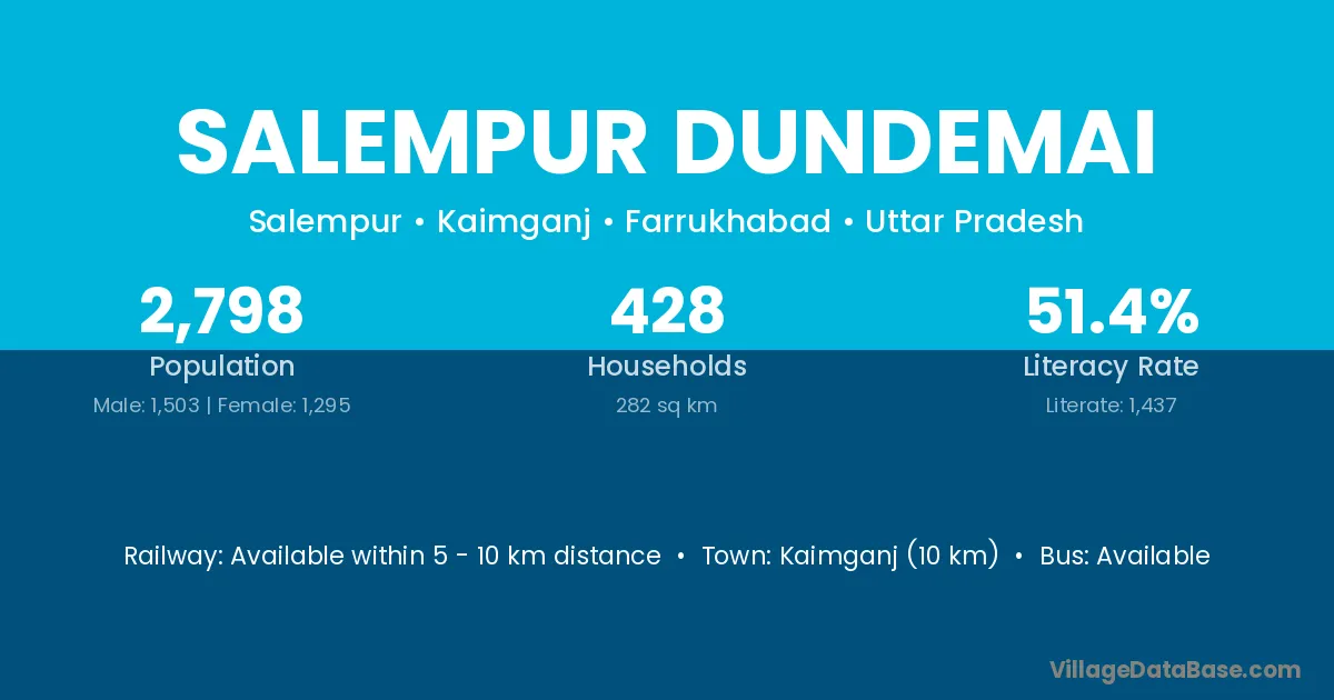 Kaimganj (10 km) is the nearest town to Salempur Dundemai village for major economic activities and is located approximately 10 km away.