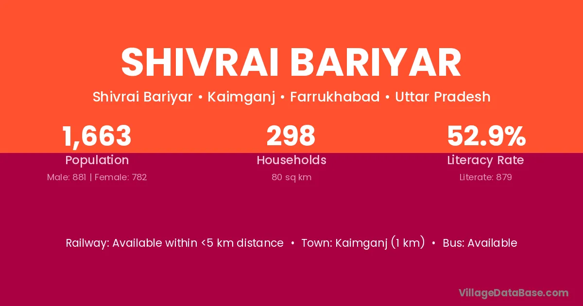 Kaimganj (1 km) is the nearest town to Shivrai Bariyar village for major economic activities and is located approximately 1 km away.