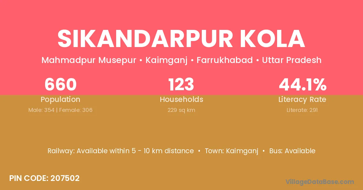 Sikandarpur Kola village has a total population of 660 people, of which 354 are males and 306 are females.