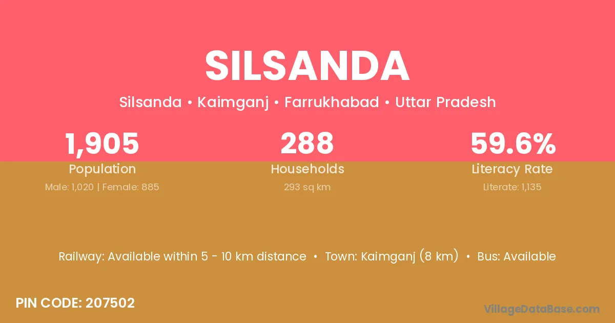 Kaimganj (8 km) is the nearest town to Silsanda village for major economic activities and is located approximately 8 km away.