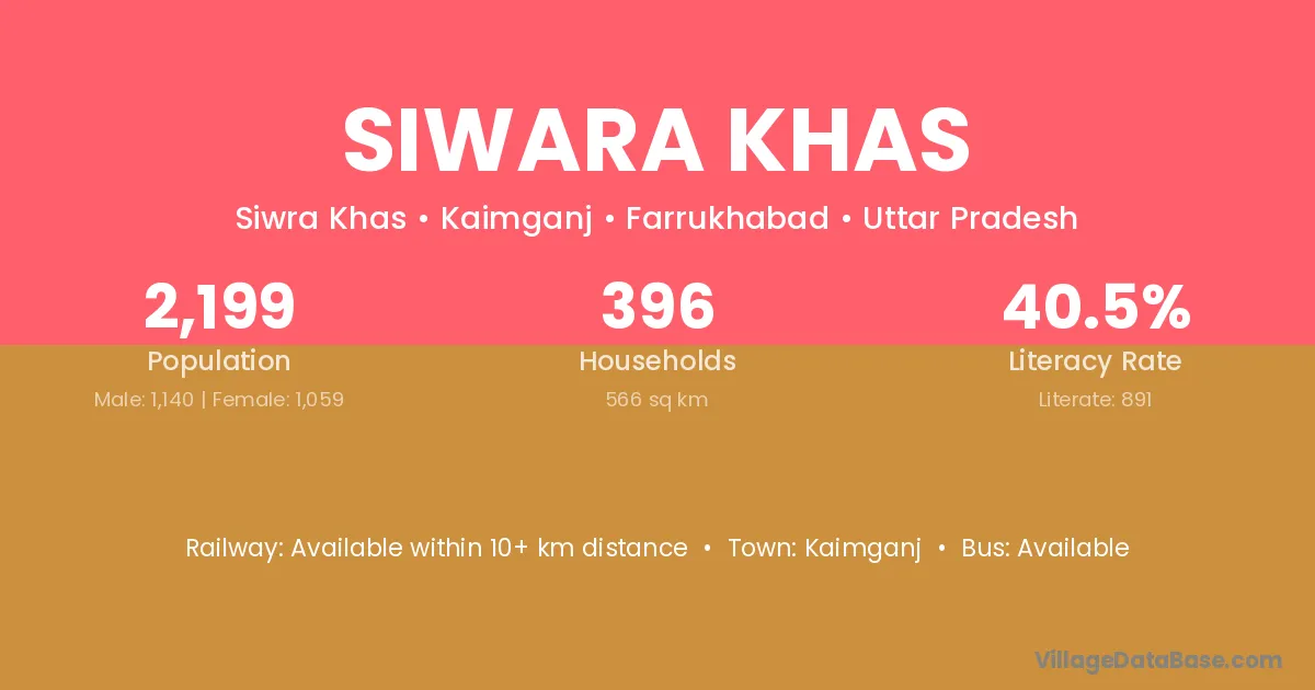 Kaimganj is the nearest town to Siwara Khas village for major economic activities