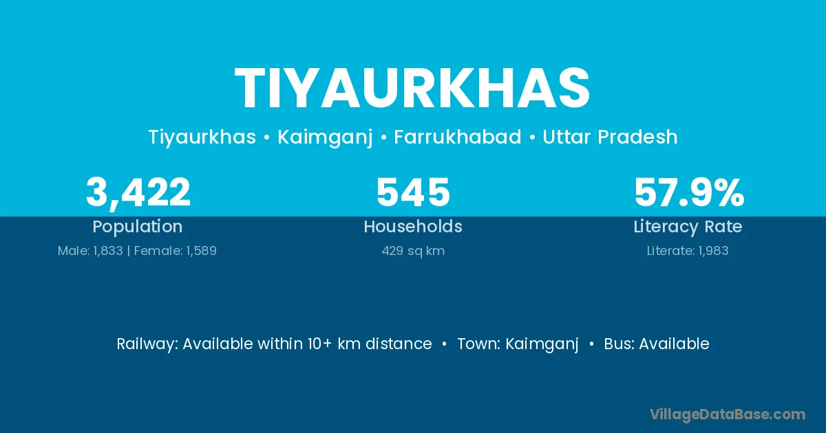Kaimganj is the nearest town to Tiyaurkhas village for major economic activities