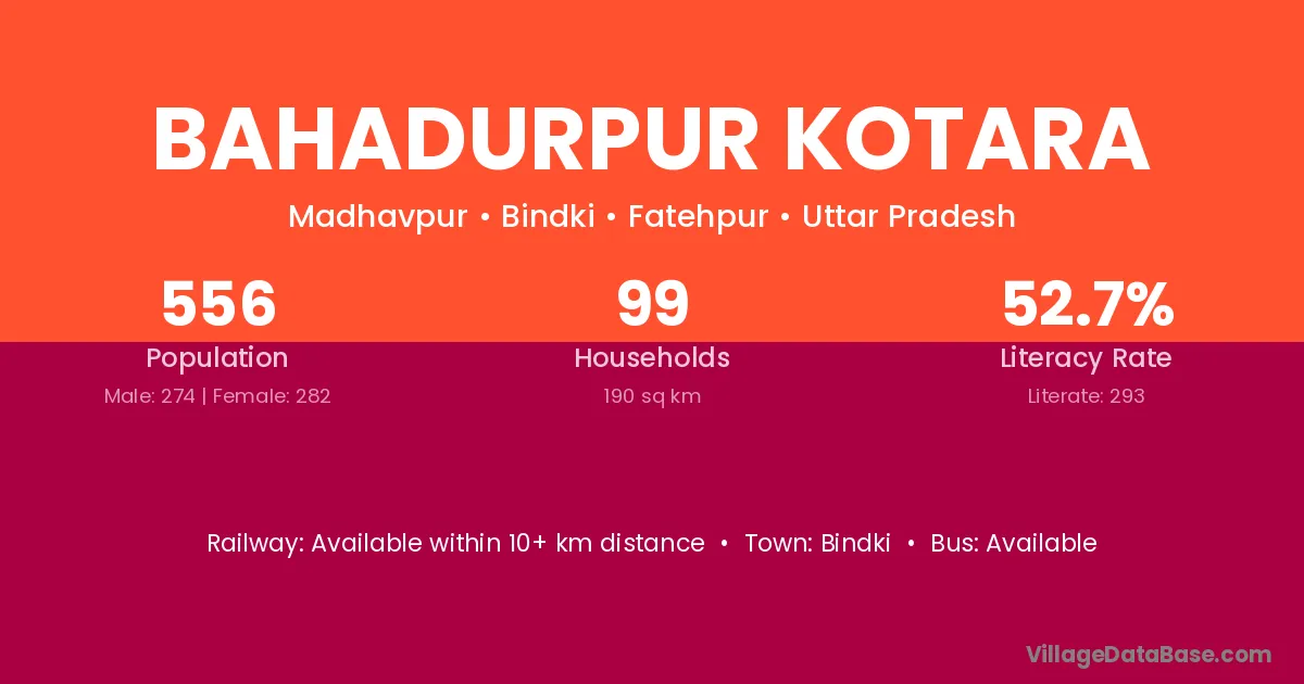 Bahadurpur Kotara village has a total population of 556 people, of which 274 are males and 282 are females.