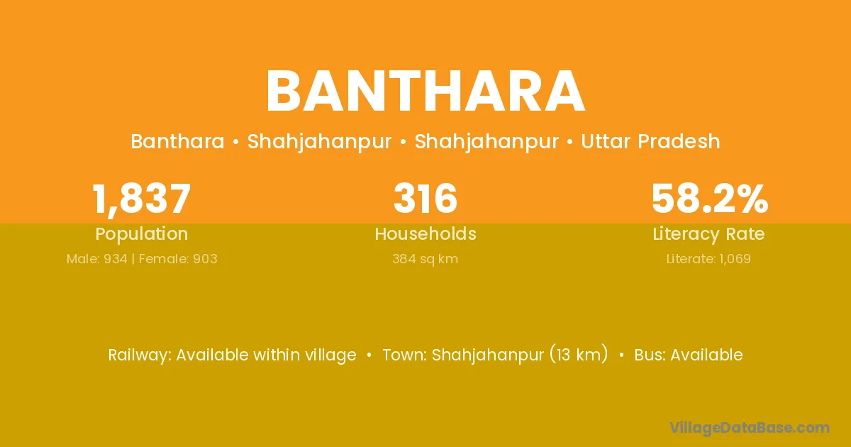 The literacy rate of Banthara village is 66.50%. Male literacy stands at 73.94% and female literacy at 58.29%.