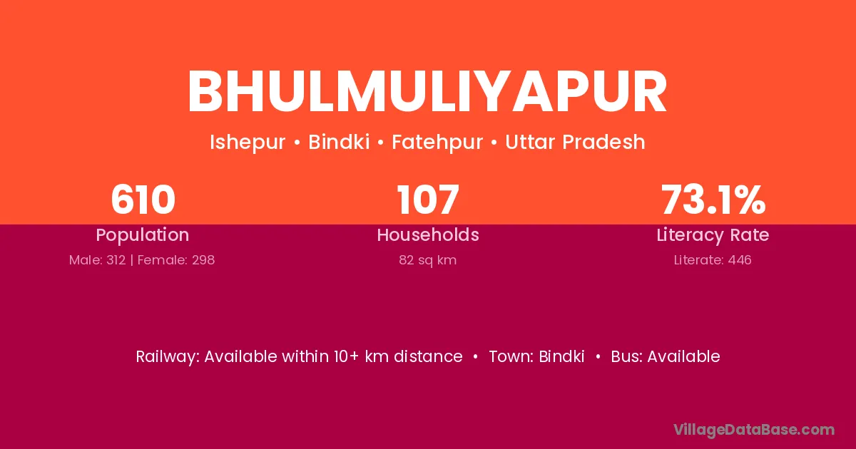 Bhulmuliyapur village has a total population of 610 people, of which 312 are males and 298 are females.