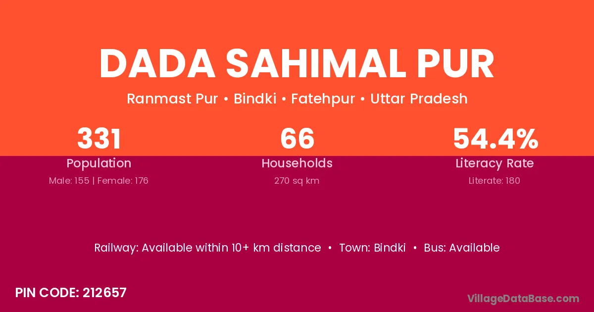 Dada Sahimal Pur village has a total population of 331 people, of which 155 are males and 176 are females.