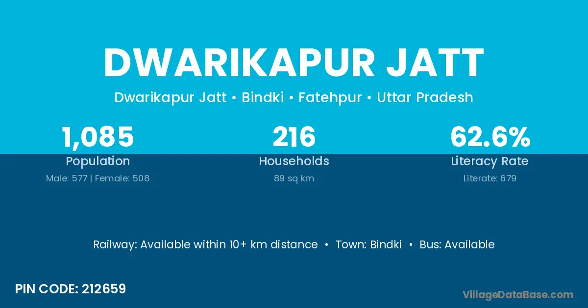 Bindki is the nearest town to Dwarikapur Jatt village for major economic activities