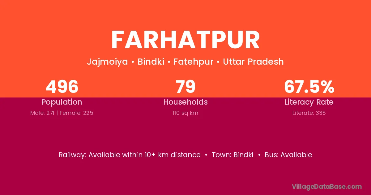 Farhatpur village has a total population of 496 people, of which 271 are males and 225 are females.