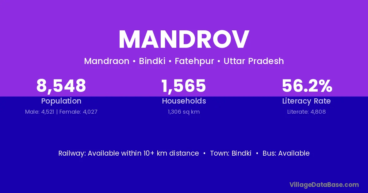 Bindki is the nearest town to Mandrov village for major economic activities