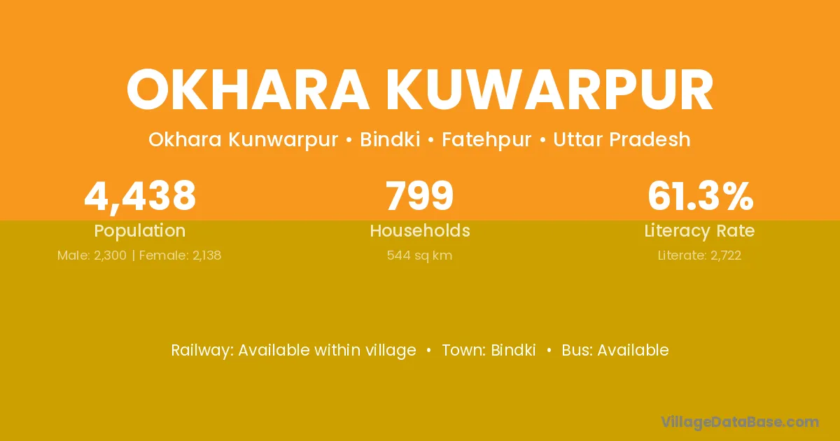 Okhara Kuwarpur village has a total population of 4,438 people, of which 2,300 are males and 2,138 are females.