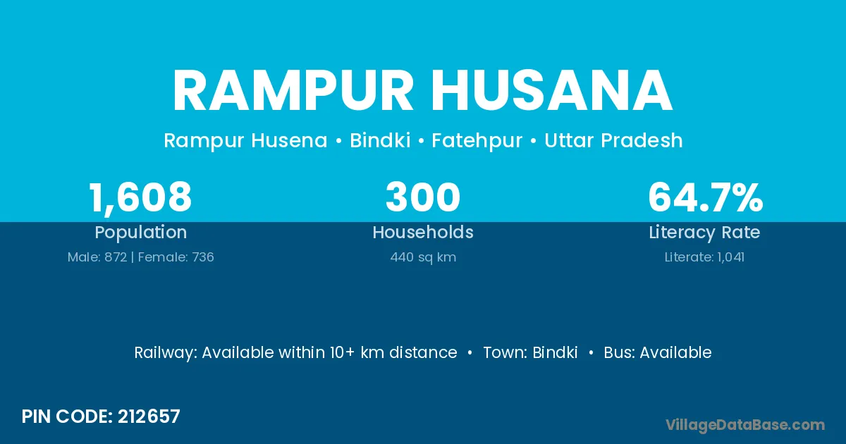 Bindki is the nearest town to Rampur Husana village for major economic activities