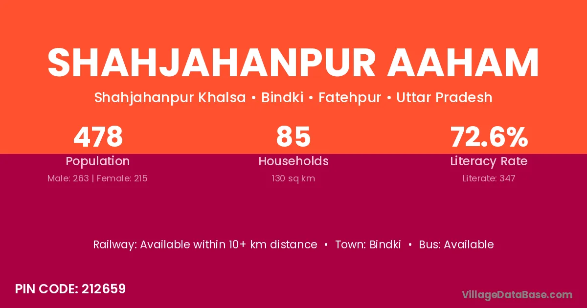 Shahjahanpur Aaham village has a total population of 478 people, of which 263 are males and 215 are females.