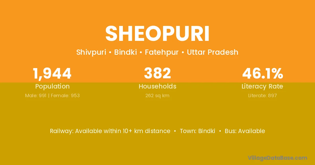 Sheopuri village has a total population of 1,944 people, of which 991 are males and 953 are females.