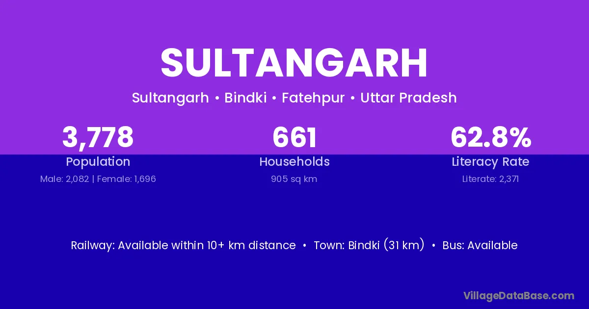 Bindki (31 km) is the nearest town to Sultangarh village for major economic activities and is located approximately 31 km away.