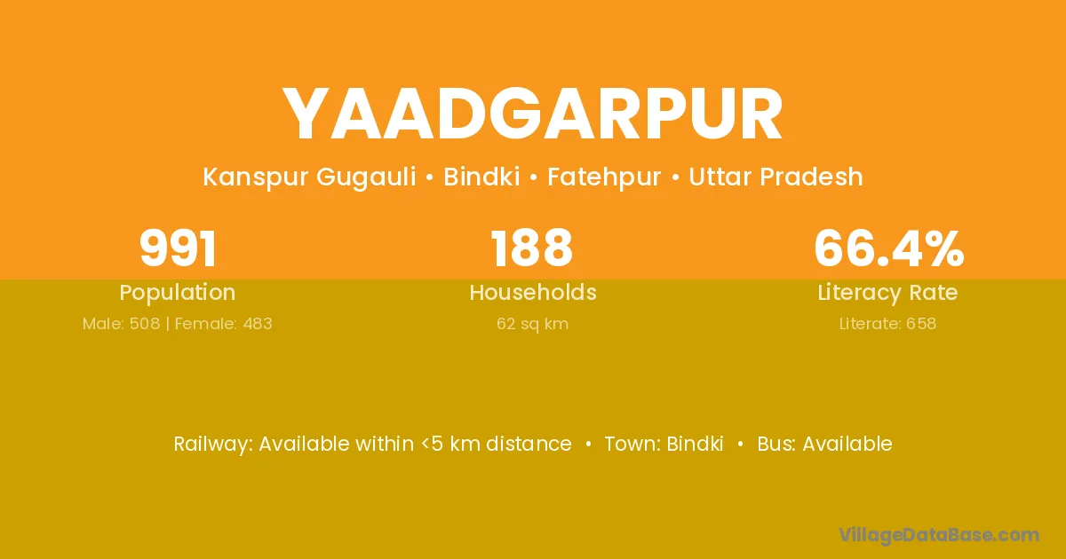 Bindki is the nearest town to Yaadgarpur village for major economic activities