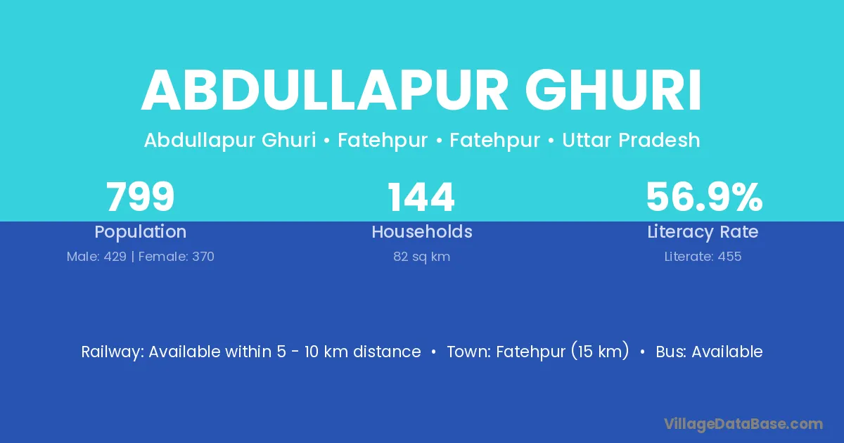 Fatehpur (15 km) is the nearest town to Abdullapur Ghuri village for major economic activities and is located approximately 15 km away.