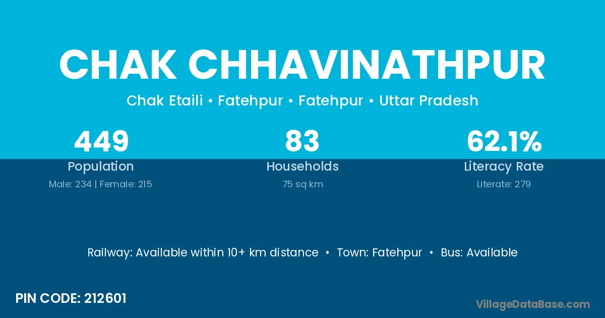 Chak Chhavinathpur village has a total population of 449 people, of which 234 are males and 215 are females.