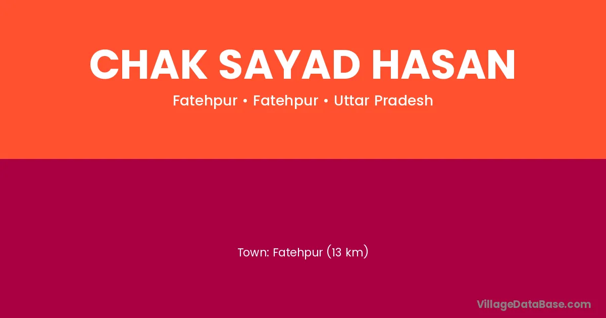 Fatehpur (13 km) is the nearest town to Chak Sayad Hasan village for major economic activities and is located approximately 13 km away.
