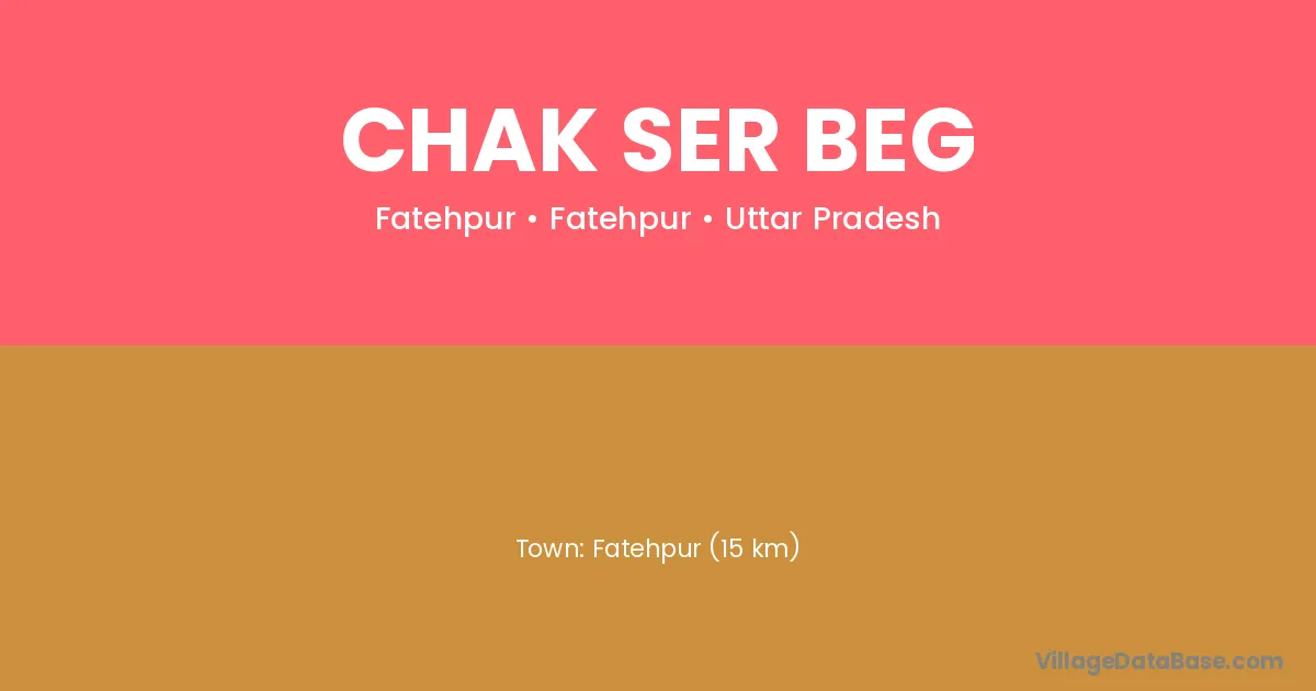 Fatehpur (15 km) is the nearest town to Chak Ser Beg village for major economic activities and is located approximately 15 km away.