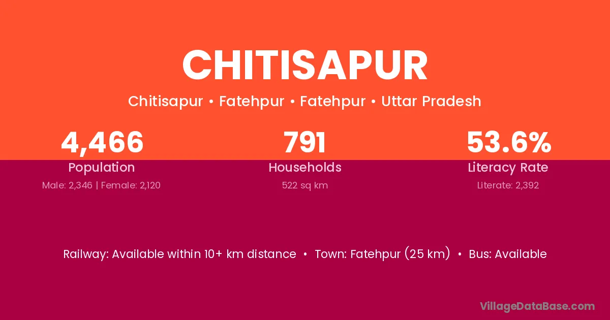 Fatehpur (25 km) is the nearest town to Chitisapur village for major economic activities and is located approximately 25 km away.