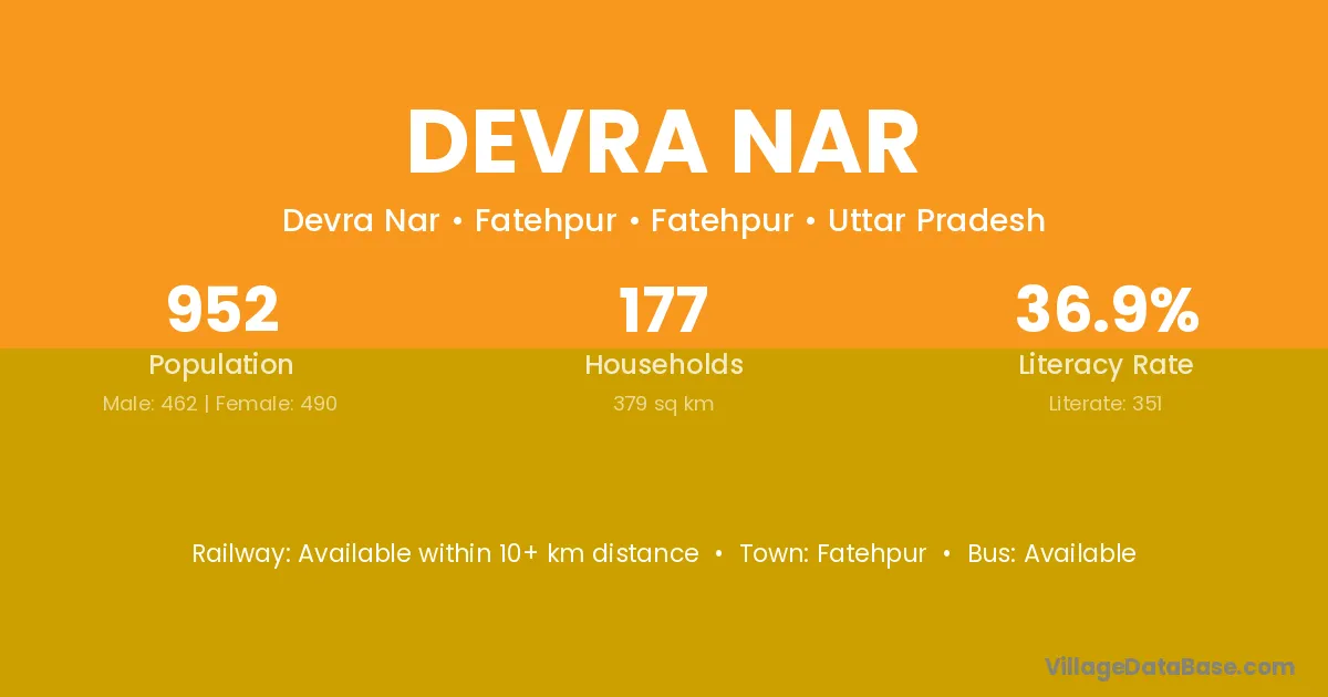 Devra Nar village has a total population of 952 people, of which 462 are males and 490 are females.