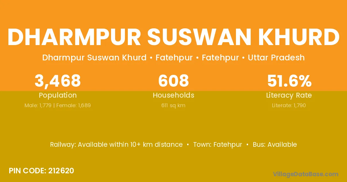 Fatehpur is the nearest town to Dharmpur Suswan Khurd village for major economic activities