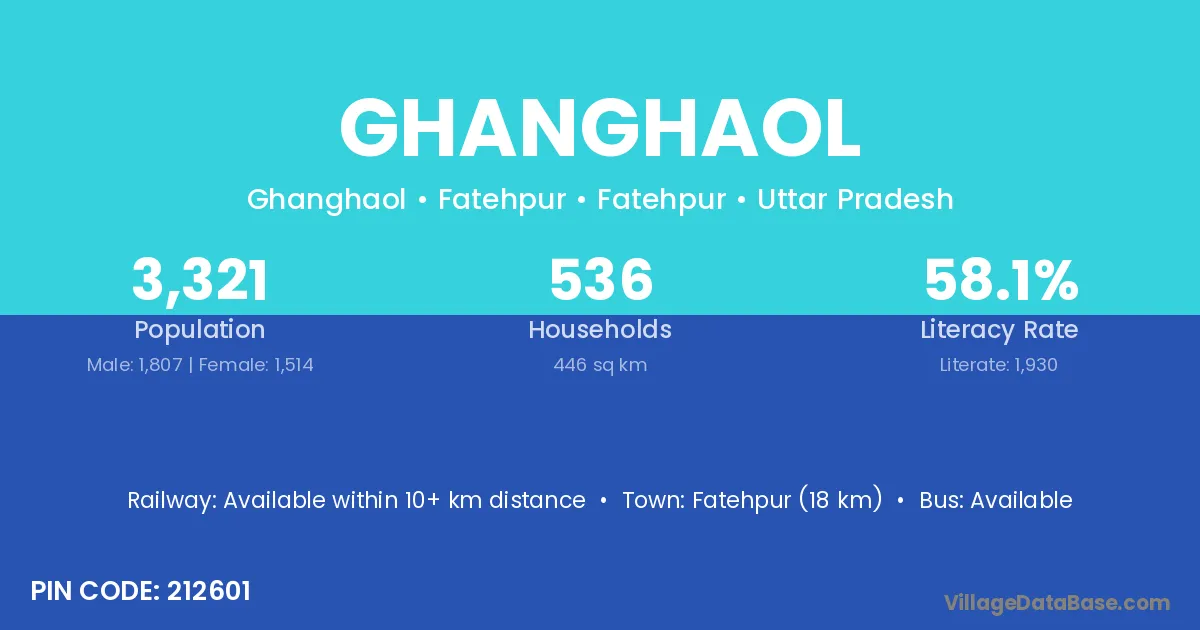 Fatehpur (18 km) is the nearest town to Ghanghaol village for major economic activities and is located approximately 18 km away.