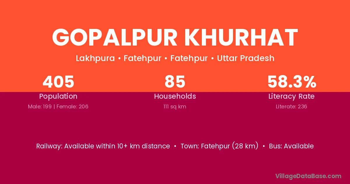 Gopalpur Khurhat village has a total population of 405 people, of which 199 are males and 206 are females.