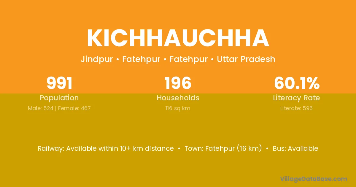 Fatehpur (16 km) is the nearest town to Kichhauchha village for major economic activities and is located approximately 16 km away.