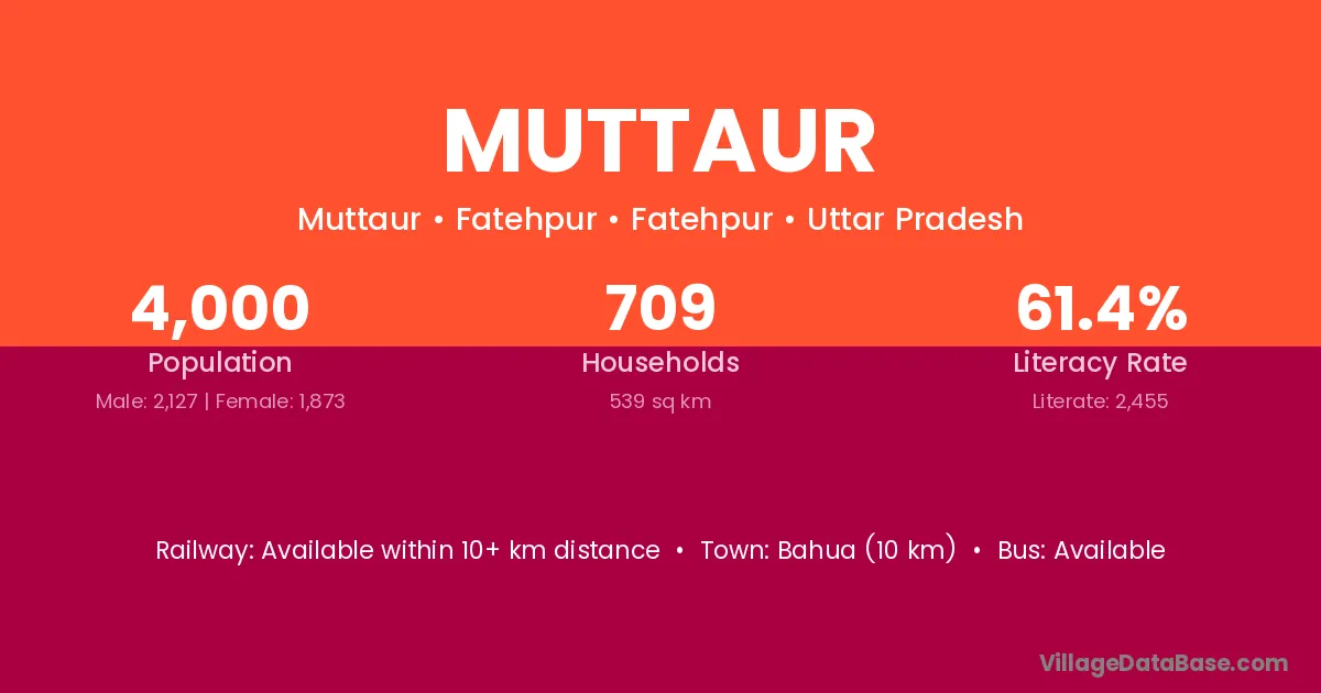 Bahua (10 km) is the nearest town to Muttaur village for major economic activities and is located approximately 10 km away.