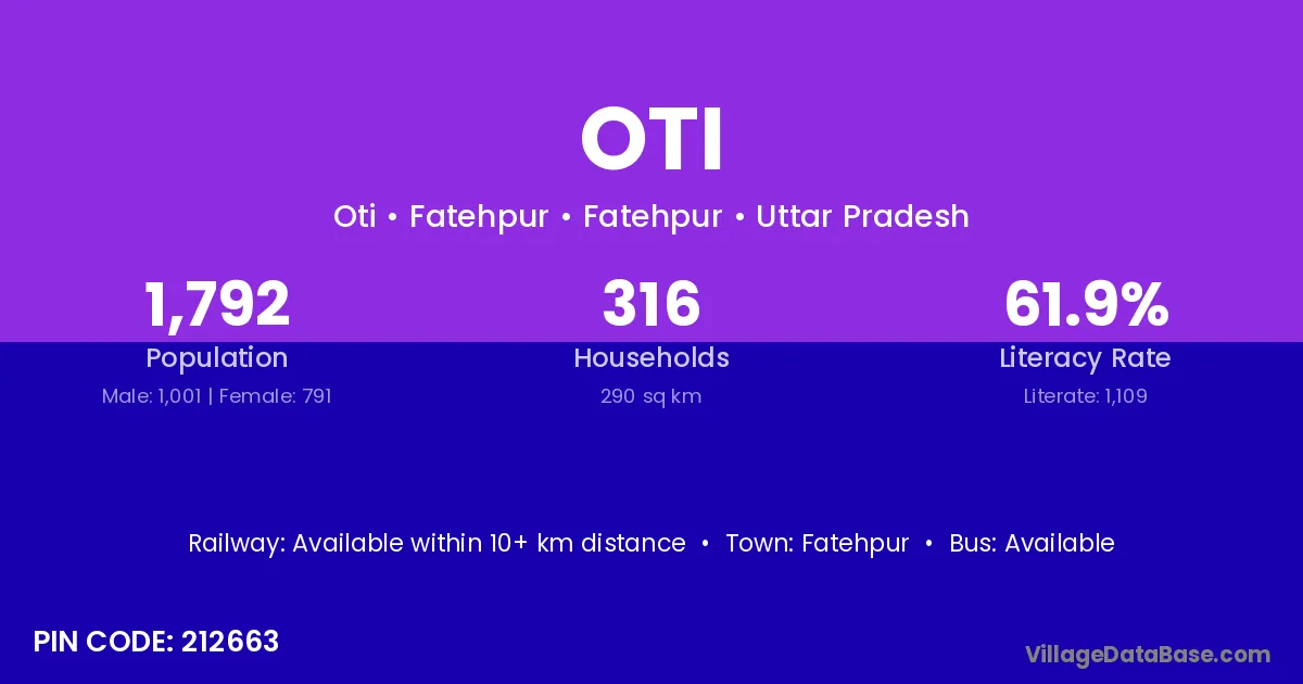 According to Census 2011 information, the village code of Oti village is 212663.